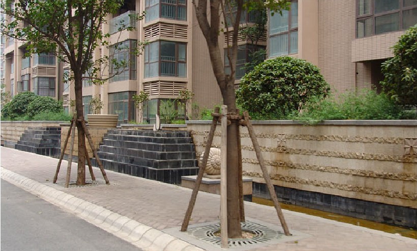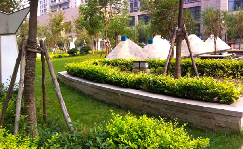 該小區(qū)結(jié)合現(xiàn)代國際先進的設(shè)計理念,是景觀風格與建筑的和諧統(tǒng)一,各種形式的水景,增加小區(qū)活力;植物景觀以當?shù)刂参餅橹鳎嵘参锍苫盥剩訌娙藗兊臍w屬感。