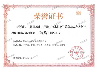 22年度海綿城市工程施工技術研究科技進步獎三等獎