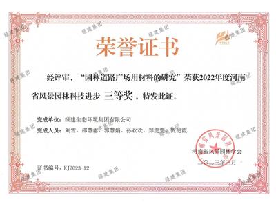 2023年度河南省風景園林科技進步獎三等獎