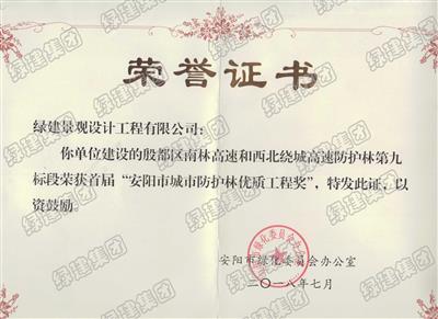 榮獲首屆安陽城市防護(hù)林優(yōu)質(zhì)工程獎(jiǎng)