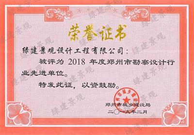 2018年度鄭州勘察設(shè)計(jì)行業(yè)先進(jìn)單位