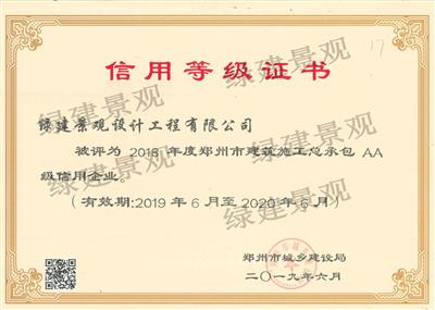 2019年度鄭州市建筑施工總承包AA級(jí)信用企業(yè)
