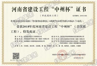 雙鶴湖二標(biāo)榮獲2018年度河南省優(yōu)質(zhì)園林工程獎(jiǎng)