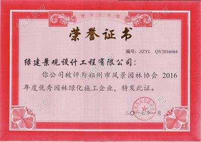 2016年鄭州市優秀園林綠化施工企業